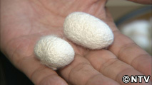 プラチナボーイとはオスだけふ化する蚕のことで、37年の歳月をかけて研究され12年前に開発に成功したものだそうです。オスの蚕は体が小さく口も小さいので、吐く糸が細く小さな繭を作ります。その繭を紡いだ絹糸は、糸が細い分しなやかで光沢があるのだそうです。世界でここでしか買えないプラチナボーイの着物は男性用・女性用のどちらもあります!