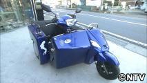 足に障害のある人でも人の手を借りずに出かけられるようにと、片山さんが設計した車いす専用の3輪バイク「コアラ」。乗り降りも1人でできるようにハッチの開閉も電動式になっています。体験会なども開いていて、風を切る感覚を初めて味わったと参加者からも好評です。
