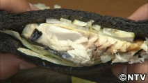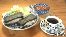 イカスミと竹炭を練り込んだ『黒いパン』と『焼きサバ』のコラボが絶妙です!