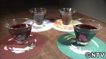 コースターには、グラスの形に合わせた特殊な座標図を基に花が描かれていました。