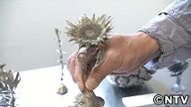 ものづくりをテーマにした施設「2k540」の中にある、『アイアンカフェ』。焼き立てワッフルと共に、およそ80℃で溶ける特殊な金属を使った鋳造体験が出来ます。ショップでは、ヒマワリの花などを石膏の型に入れ、燃やし尽くした後の空洞に溶けた金属を流し込んで作る「消失鋳造」の作品などを販売しています。