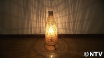 遊び心たっぷりで、壁掛け用のオブジェや竹で編んだ魚を獲る網など 様々な物を個性的な照明にしています!