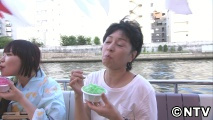 山口県柳井(やない)市の特産品、金魚ちょうちんに明かりを灯し、日本橋のたもとから夕暮れの隅田川へ。食べ放題の「かき氷」も付いていて、船上では金魚グッズが当たるビンゴ大会も開かれます。