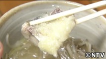 たっぷりのゴボウやモヤシの下から出てきたのは、鯵の天ぷら!つみれにすると硬くなってしまいますが、天ぷらにすると鯵の身が蒸し焼きのようにふっくらするそうです。もうひとつの名物「金目鯛鍋」も絶品!