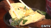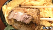 圧力鍋で柔らかく煮た豚バラ肉の角煮に、衣をつけて揚げたカツ丼!カツが大き過ぎて玉子とじに出来ないため、オムレツ風のとろとろ玉子を上にのせています。