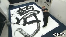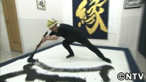 大きな紙に巨大な筆で書道パフォーマンス!他にはない体験になぎらさん、大奮闘!