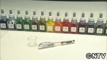 万年筆やボールペンのインクを自分好みの色に手作りできるお店。混ぜた色の比率を記録したレシピは、2年間お店で保存され、何度でも同じ色を頼むことができます。