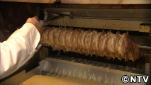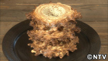 内側はゆっくりした回転速度、外側は4倍の速度で回転させながら生地をかけて焼いた2層構造のバウムクーヘン。中はもっちり、外はカリッとした食感が楽しめます。