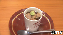全粒粉を麦茶で練ったうどんに合わせるのは、ブルーチーズをイリコ出汁で溶いて作ったブルーチーズ出汁!フォアグラがたっぷり入った茶碗蒸しも絶品です。