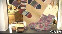 店主自身の介護経験から、履かせる側も楽になればと現役ヘルパーさん監修のもと開発した靴下。その他、肌が弱い人のための天然草木染めの靴下などもあります。