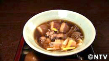 江戸時代から続いていた、日本橋馬喰町の元祖鴨南ばんの店が閉店してしまったため、本家の暖簾を引き継いでいるこちらのお店。およそ200年の歴史を持つ鴨南ばんに使うのは、7割そば。返しダレは、日本橋にあったお店から七代目が譲り受け、その味を八代目と共に受け継いでいます。江戸時代はカモが小さかったので、骨ごとツクネにしていたそうですが、現代のカモは大きいので、肉と、砕いた骨を入れて、江戸っ子が愛した鴨南ばんを再現しています。
