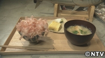 削りたてのかつおぶしがたっぷり乗った、「かつお節めし専門店」。味の違いを楽しんでもらうため、ひと月ごとに違った産地のかつお節を使っているそうです。