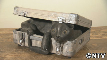 自宅の庭に迷い込んだ猫がきっかけで35年間、猫の作品ばかり作り続けている島田さん。カバンや紙袋に入る猫など、どれも実際に猫が見せるしぐさを見事に表現しています。