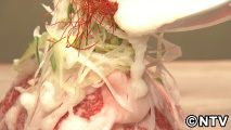 白ダシ入りの「とろろ」をかけると、肉の旨みを引きたてることから名付けた「とろにく」。たっぷりの野菜に黒毛和牛のサーロインを盛り付けたタワー鍋は、絶品です!