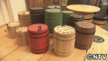 木樽を使ったインテリアと、パスコという紙の素材を使ったボックスやトランク