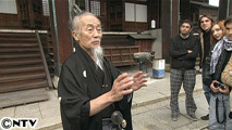 外国人観光客相手にガイドと侍ショーをしているジョー岡田さん、現在80歳。