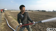 一人で田んぼへ出向き、消防隊員さながらの放水を楽しんでいるそうです。