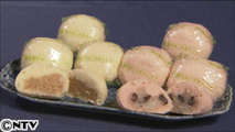 慶事用に考えられた紅白の「おこわまんじゅう」を作りました。