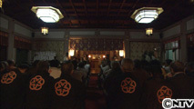 敷地内の照明を落とし、広い境内をぐるりと松明を持って一周する様は厳かで、
