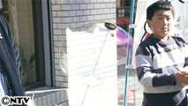 アクリル製の棒に、塩化ビニールのテープを3ミリ幅で切り一つ一つ張ってとめています。この様な形に変形する秘密は、厚さと長さにあるそうで、