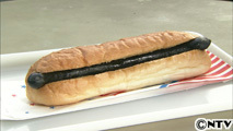 葉山でとれたイカのスミを混ぜ、腸詰にします。