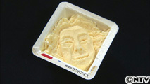 アイスの外側を削って、食べながら顔の輪郭を作り、