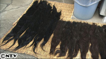 かつらに使う髪は、中国から仕入れたもので、1kg10万円以上する貴重品。