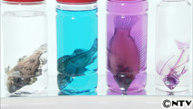 試行錯誤の末、この様なカラフルな透明標本を生み出しました。