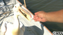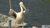印旛沼の人気者 モモイロペリカンのカンちゃん