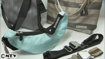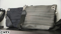 シートベルトを1本ずつ並べて繋げていき、1枚の素材にしていくシートベルトバッグや、廃エアバッグを使ったバッグ、