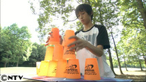 スポーツスタッキングとは、カップを決められた型に積みあげ、