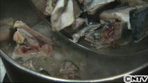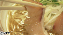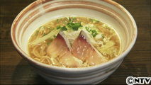 スープは、ブリと鶏を一緒に煮込んで取った濃厚なもの。
