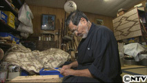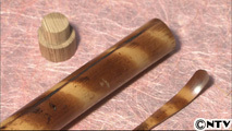 長い年月、囲炉裏の煙でいぶされた高価なススダケから削る茶杓は、