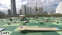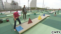 コースにはいくつもの障害物が配置され、それを除けながらカップにボールを入れる競技です。