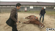馬はとても神経質で、戦闘シーンなどいろいろな物音でも動じないよう訓練しています。