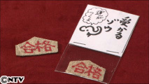 象の糞から作った紙に「交通安全」「金運」「恋愛関係」「健康」が書いてあり、