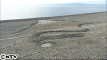 千本浜の石ころで描く巨大富士山!