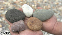 坂田さんは約2カ月半かけて浜から15万個以上の石を集めて色分けし、