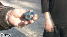 医師のマイク・マーシャルが靴下に豆を詰めたものを