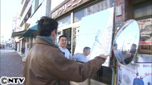 この鏡は高くなったスカイツリーを、斜めに置いた鏡越しに見ることで