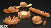 皮や実をむく順序、方向などを変えることによって、様々な芸術的作品に変身。