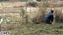 天然鴨を網で捕っている石井幸男さん。