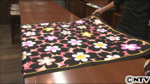 家紋や名前を入れた伝統的な風呂敷は、主に二代目の英嗣さんが作っています。
