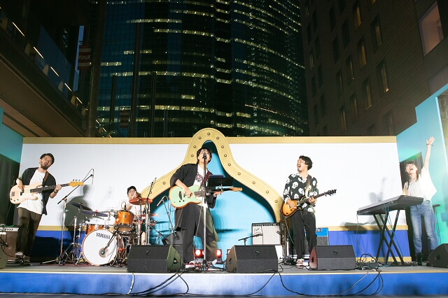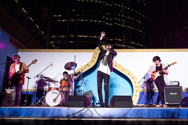 最速上映後にはバンドハラスメントが登場し、第3期エンディングテーマ『一目惚れ』をお客さんの前で初披露。ボーカルの井深さんは「僕たちが学生の頃から有名な作品で、その作品に携われるのは凄く光栄なことだと思いました。」と担当することが決まった心境を話しました。