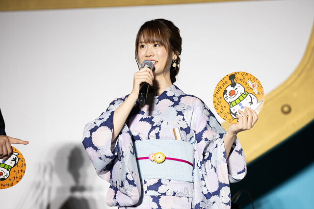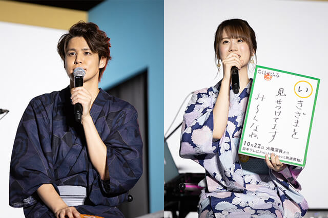 その後かるた型のフリップを使い作品のPRが行われ、宮野さんはちはやふるに大事なものを順番に歌にしたという「せとあさみ みやのまもると 他、全員」。そして瀬戸さんは「いきざまを 見せつけてます み~んなね」とPR。続けて「各キャラクターの魅力を丁寧に一話一話描いているので放送を楽しみにしていてください」と紹介しました。