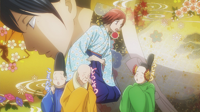 2勝1敗で原田がリードする名人戦は4試合目に突入する。千早が伝えてくれた弱点も含め周防を研究した原田は、攻めがるたの姿勢を貫き試合を優勢に運んでいた。原田の勢いを見ても変わらず冷静な周防は、自分を育ててくれた叔母の言葉を思い出していた。その言葉こそ周防がかるたを続ける理由だった。