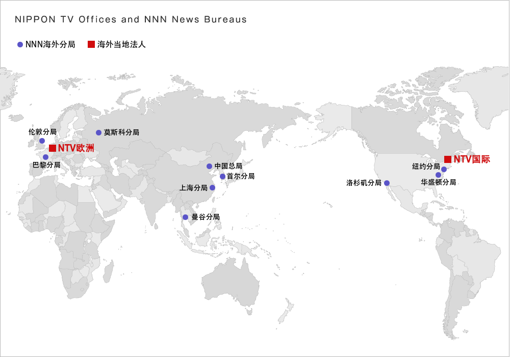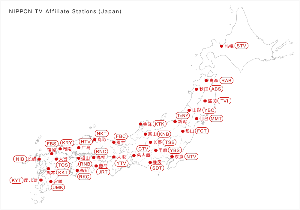 Nippon TV的广播网分别有NNN(Nippon News Network)和NNS(Nippon Television Network System)两个组织。NNN作为相互联播新闻的组织,现在具有30家企业加盟。NNS主要为向旗下各家电视网公司提供NTV的节目而组成,现在有29家公司加盟。另外,NNS有共同事业委员会及媒体委员会两个委员会,该组织为促进相互的团结以及繁荣,贡献于各家公司。