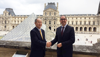 日本电视台大久保社长(左)与卢浮宫博物馆Jean-Luc Martinez馆长(右)