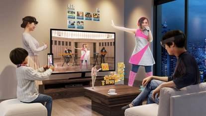 "日本电视台 Mixed Reality"系统通过让视听者带上穿透型智能眼镜,在电视画面的外面显示各种数据与CG内容,并且支持多人同时视听。电视里的登场人物等从画面中跳出,在眼前栩栩如生地移动、发声。视听者可以在体育转播节目中将比赛数据、选手等显示在客厅里,或者在音乐节目中让艺人直接在自己家中登场。