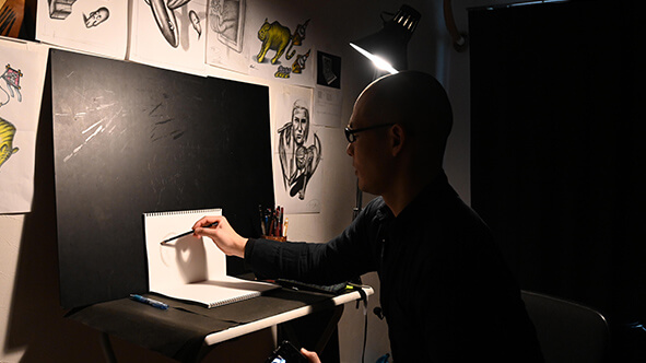 鉛筆だから出る陰影のこだわりや、緻密な変化で作品に命が吹き込まれる